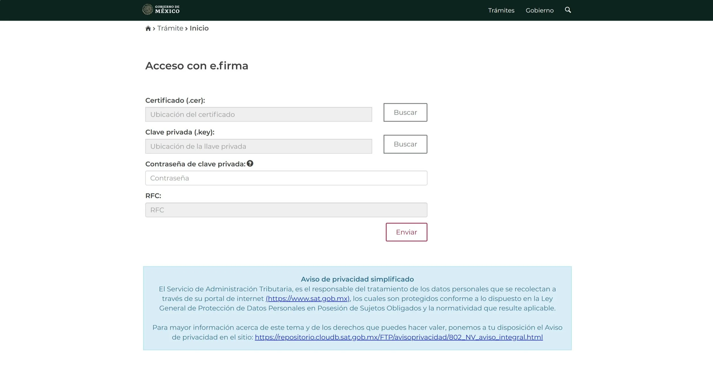 9. Una vez que hayas generado tus archivos, ingresa a la página del SAT Certisat e ingresa con tu eFirma: SAT Autenticación