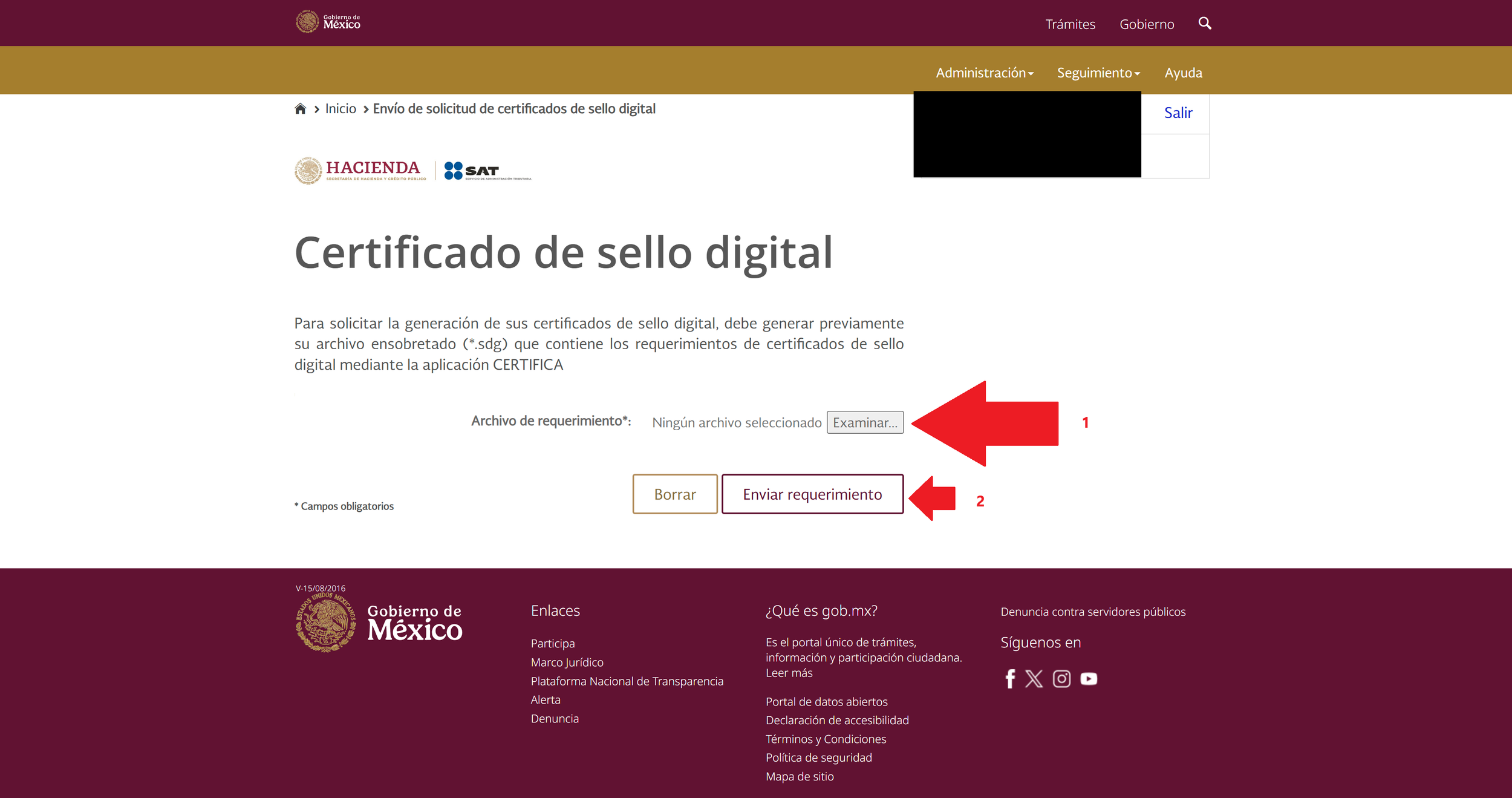10. Da click en “Envío de solicitud de certificados de sello digital”: