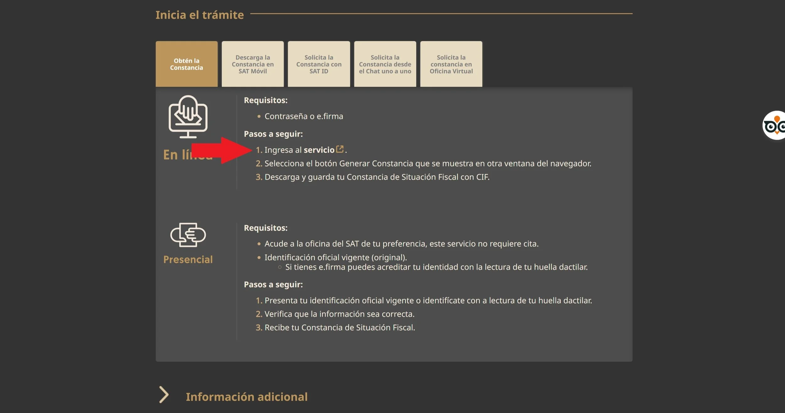 Posteriormente dale click a “Obtén la Constancia” -> “Ingresa al servicio”